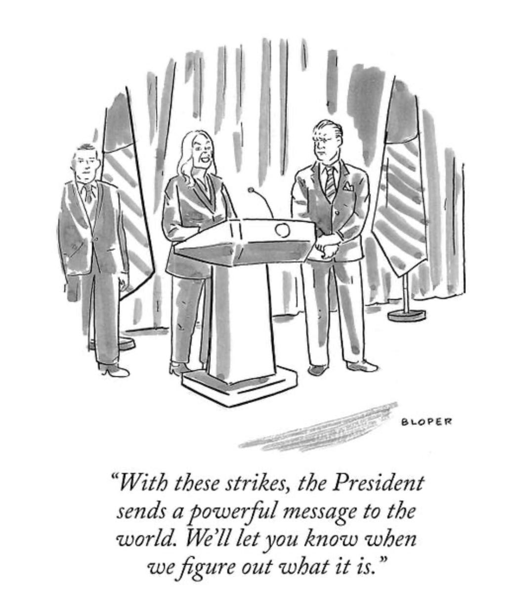 The others get it. He’s the star. The only star. The Secretary of Defense dips into the bravado of his Fox News background to present a roaring lion, never mind that real lions don’t need to roar. The Boss likes the manly display of vindictiveness. All Hegseth’s talk about The “Warrior Ethos” and how we have no mercy, is this weird mix of macho cosplay and TV anchor eye-contact.